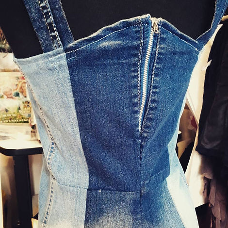For years I saved old pairs of jeans in the hope that one day I would make my own denim pinafore or dress rather than buy one for £40/50. This design is built up of 4 pairs of jeans and I couldn't be more thrilled with the final outcome.